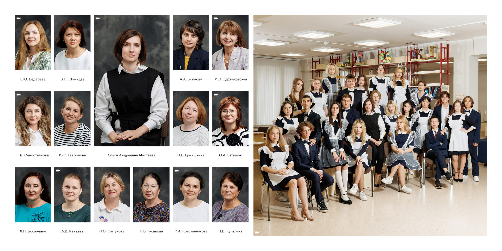 7-й разворот: страница учителей + общее оживающее фото класса